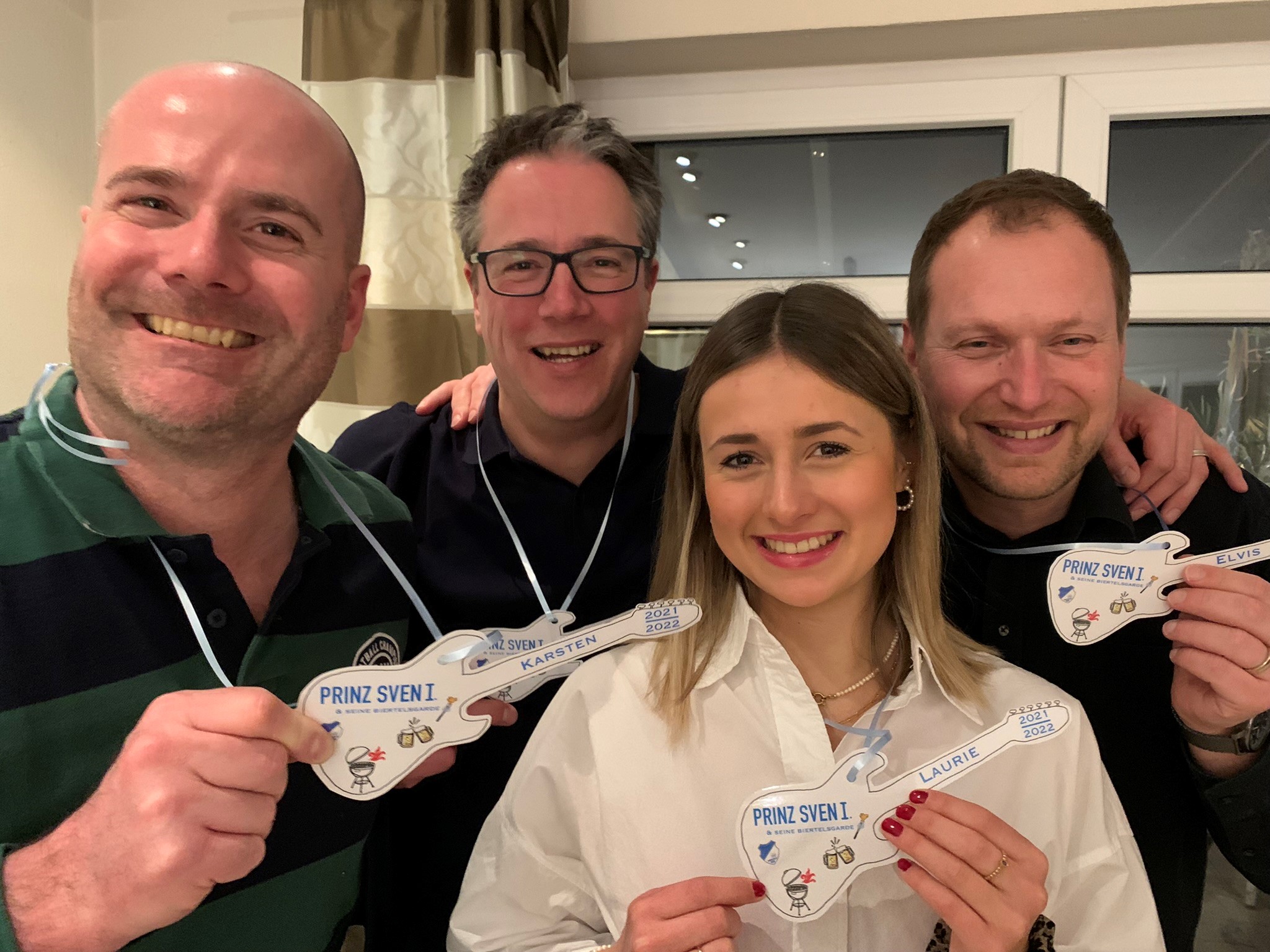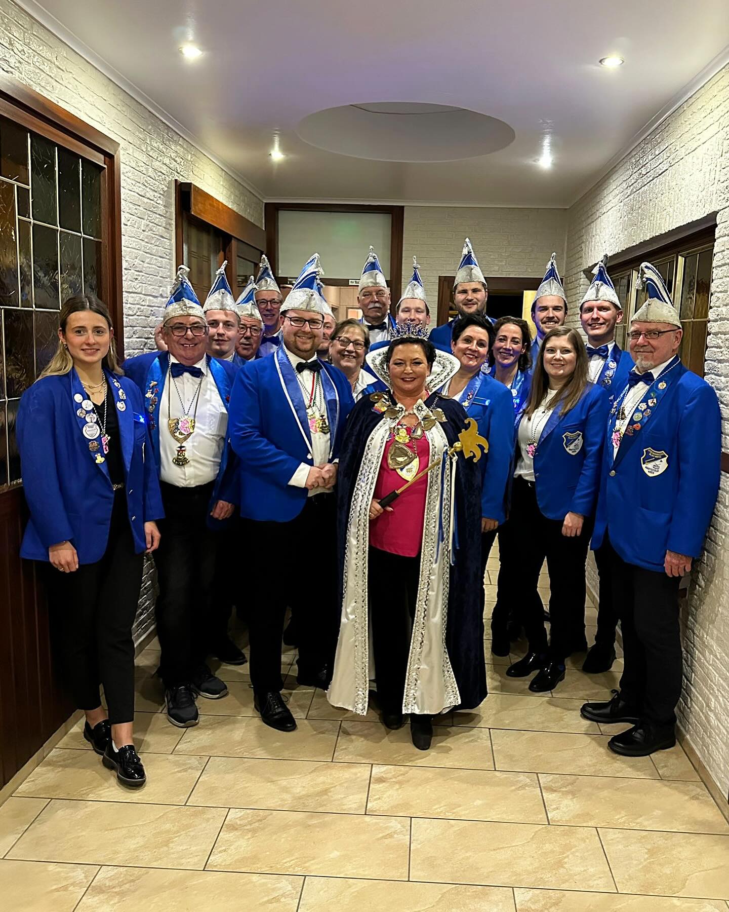 Dieses Mal befindet sich der Hofstaat komplett in Blau-Weißer Hand zum 70. Jubiläumsjahr Neben Festkettenträger Herbert van Stephoudt hat gestern am 27.7.2025 sein Sohn Lucas van Stephoudt den letzten Schuss auf den Vogel vorgenommen und damit den neuen Hofstaat bestätigt. Der neue Hofstaat besteht aus: von links: Minister Simon Schmaelen mit Julia; König Lucas van Stephoudt mit Michelle; Minister Fabian Clancett mit Fabienne; Königsadjutant Thomas Jentjens Der Hofstaat samt Festkettenträger freut sich mit euch allen