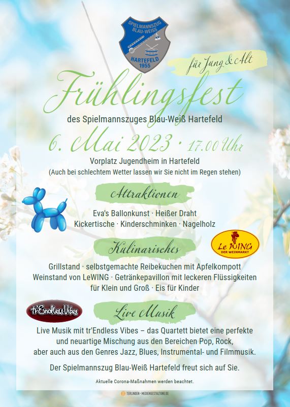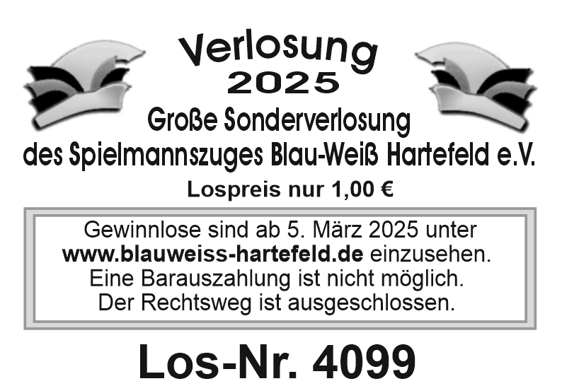 Der offizielle Hartefelder Karneval wurde zwar durch den Spielmannszug„Blau-Weiß“, der für den Saalkarneval zuständig ist, und die St. AntoniusBruderschaft als Veranstalterin des Rosenmontagszuges, abgesagt, aber soganz möchte das „Dorf mit H.“ nicht auf den närrischen Spaß verzichten.„Blau-Weiß“-Vereinswirt Dragan Bozovic lädt daher am Rosenmontag, 28.Februar, ab 11.11 Uhr alle Jecken ein zur „Rosenmontags-Fete“. Gefeiertwird an der frischen Luft im Biergarten und im Außenbereich der„Dorfschmiede“ an der Hartefelder Dorfstraße.Mit dabei ist auch Hartefelds Prinz Sven I. (Forthmann)