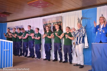 Mit dem „Großen Hartefelder Karnevalsorden“, der nur einmal in der Session vergeben wird, zeichnete „Blau-Weiß“ die „Fusionisten“ aus. Die Gruppe aus derzeit 18 fröhlichen Karnevalisten besteht bereits seit 22 Jahren und besticht in jeder Session mit einem ebenso phantasievollen wie kreativ hergestellten Rosenmontags-Mottowagen, der auch die Lokalpolitik gern auf’s Korn nimmt.Stellvertretend für alle „Fusionisten“ nahm Hubert Voßen, der sich auch immer bei der Beleuchtung des Hartefelder Dorf-Weihnachtsbaumes einbringt, die Auszeichnung aus den Händen des Vereinsvorsitzenden