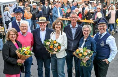 Dieses Mal befindet sich der Hofstaat komplett in Blau-Weißer Hand zum 70. Jubiläumsjahr Neben Festkettenträger Herbert van Stephoudt hat gestern am 27.7.2025 sein Sohn Lucas van Stephoudt den letzten Schuss auf den Vogel vorgenommen und damit den neuen Hofstaat bestätigt. Der neue Hofstaat besteht aus: von links: Minister Simon Schmaelen mit Julia; König Lucas van Stephoudt mit Michelle; Minister Fabian Clancett mit Fabienne; Königsadjutant Thomas Jentjens Der Hofstaat samt Festkettenträger freut sich mit euch allen