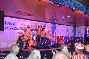 Prinz Fabian und „Blaulichtgarde“ krönten die Session: Eine ausverkaufte „Dorfschmiede“, starke Büttenreden und Wortbeiträge, sportliche Tanzauftritte und Stimmungslieder, die ihre Wirkung auf ein feierfreudiges Publikum nicht verfehlten: Besser konnten es sich die Akteure der Kappensitzung von „Blau-Weiß“ Hartefeld nicht wünschen. Strahlender Mittelpunkt in einem von Elferratspräsident Lucas van Stephoudt und seinem Vater Herbert moderierten Programm war zweifellos Prinz Fabian I. (Clancett). Dem 20jährigen Vernumer, jüngster Prinz der „Blau-Weiß“-Historie, stand dabei eine beeindruckende Mannschaft zur Seite.