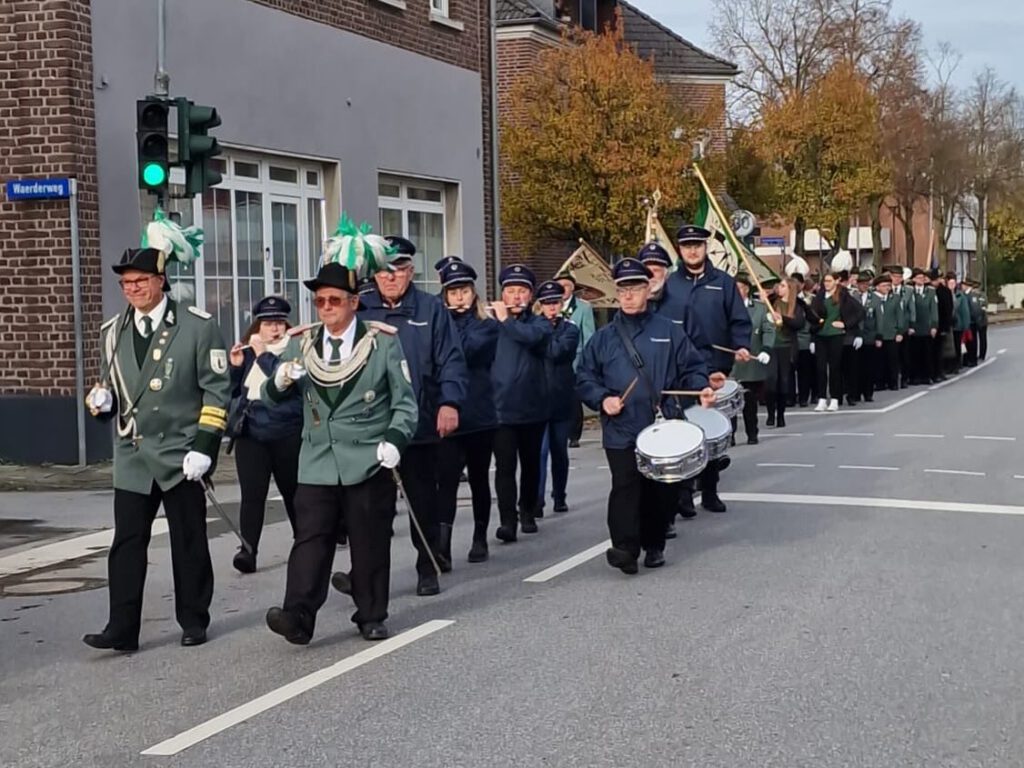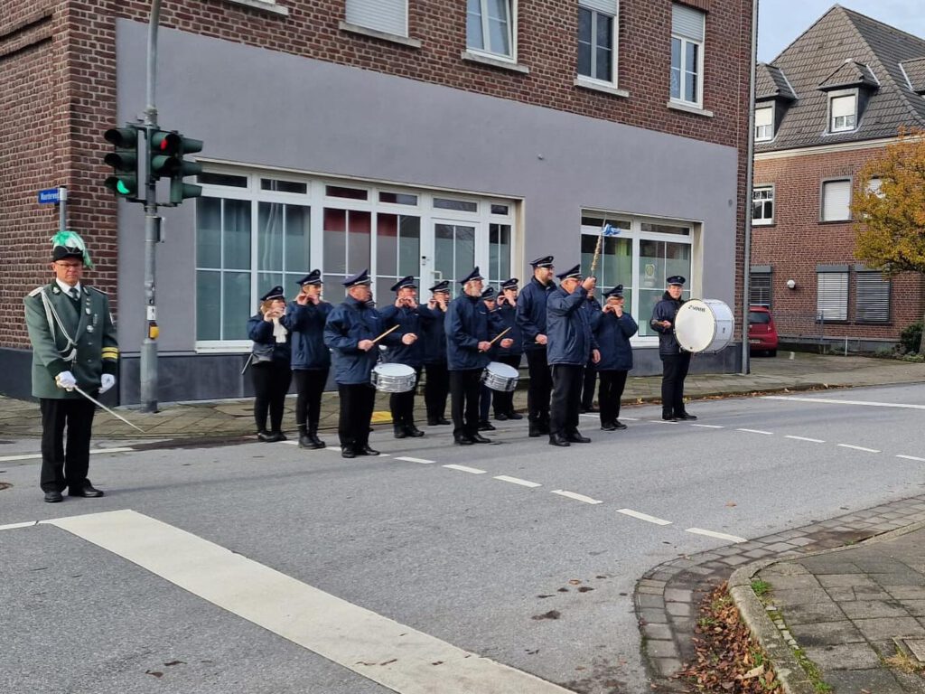 Am Sonntag begleiteten wir die Bruderschaft anlässlich des Totensonntags zu unserem Vereinslokal ‚Zur Dorfschmiede‘. Mit dem Präsentiermarsch wurde der Festkettenträger sowie der König inklusive Begleitungen aus der Kirche gespielt.Als wir nach ein paar Liedern bei Dragan ankamen, erwartete er uns schon und wir tranken uns aßen noch gemeinsam.