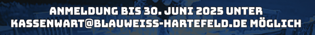 Eine Anmeldung (Email-Link weiter unten im Banner) ist unumgänglich, die wir bis zum 30. Juni 2025 sehr gerne entgegennehmen. Für die Reservierung eines Platzes wird eine Gebühr von 5€ pro Person (ab 14 Jahren) erhoben. Die Anmeldegebühr wird bitte auf unser Konto DE64 3205 0000 0323 6615 12 bei der Sparkasse Krefeld überwiesen.